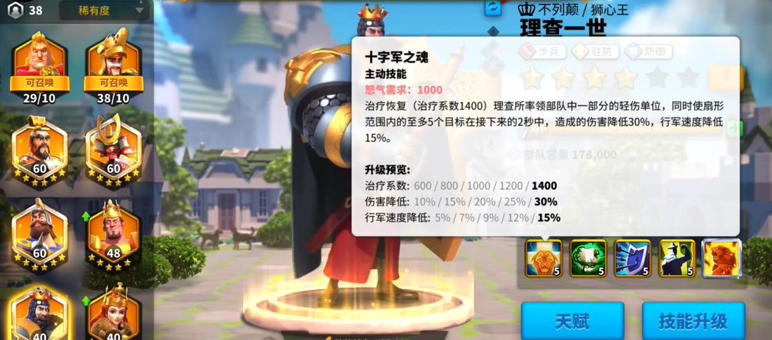 统帅系统的深度培养是提升战力的灵魂所在,其天赋点与技能等级的提升能带来巨大的属性飞跃。每位统帅都拥有独特的天赋树,优先点亮与军事相关的天赋节点,每次操作都能稳定增加战力。更关键的是升级统帅的技能等级,技能效果的强化对部队战斗力的提升是指数级的,因此应将有限的统帅经验道具和技能升级材料集中投入到主力统帅身上。对于资源有限的玩家,可以优先培养并尝试觉醒如孙武、贞德这类性价比极高的紫色品质统帅,他们的能力在实战中非常可靠。